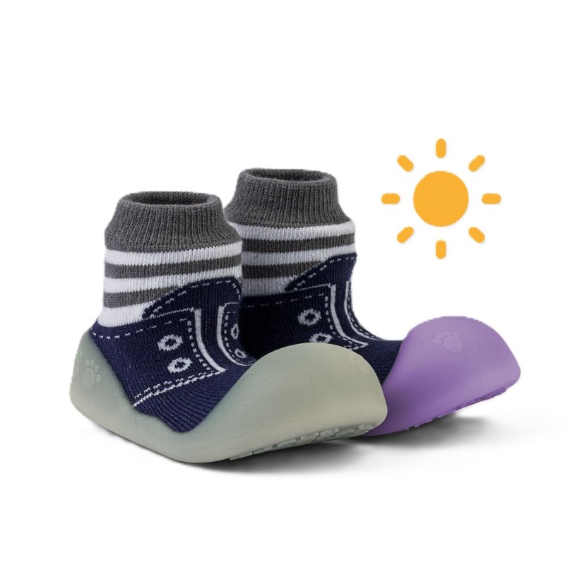 Ponožkové botičky Chameleon byly navrženy s jediným cílem: spojit zdravý vývoj chodidla s radostí a zábavou! Podporují nejen zdravý vývoj chodidla, ale také přinášejí radost a motivaci k prvním krůčkům díky své schopnosti měnit barvy! Chůze v těchto botičkách dopřává dostatek prostoru pro prstíky a umožňuje neustálý kontakt se zemí. Volná špička podporuje správný vývoj chůze a nebrání krevnímu oběhu dětské nožky. Chození v ponožkobotkách je velmi podobné přirozené chůzi naboso, což je prospěšné nejen pro nohy, ale i pro celý organismus. Botičky Chameleon mají navíc unikátní funkci změny barvy podrážky - reagují na okolní prostředí způsobem, který děti naprosto fascinuje a motivuje k pohybu a zkoumání okolního světa - při kontaktu se slunečními paprsky mění podrážka svůj barevný odstín, což vytváří pro malé objevitele kouzelný zážitek při každém krůčku.