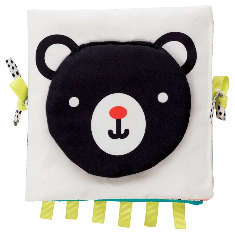 - látková knížka s kontrastní grafikou rozvíjející smysly děťátka, jemnou motoriku a kognitivní schopnosti