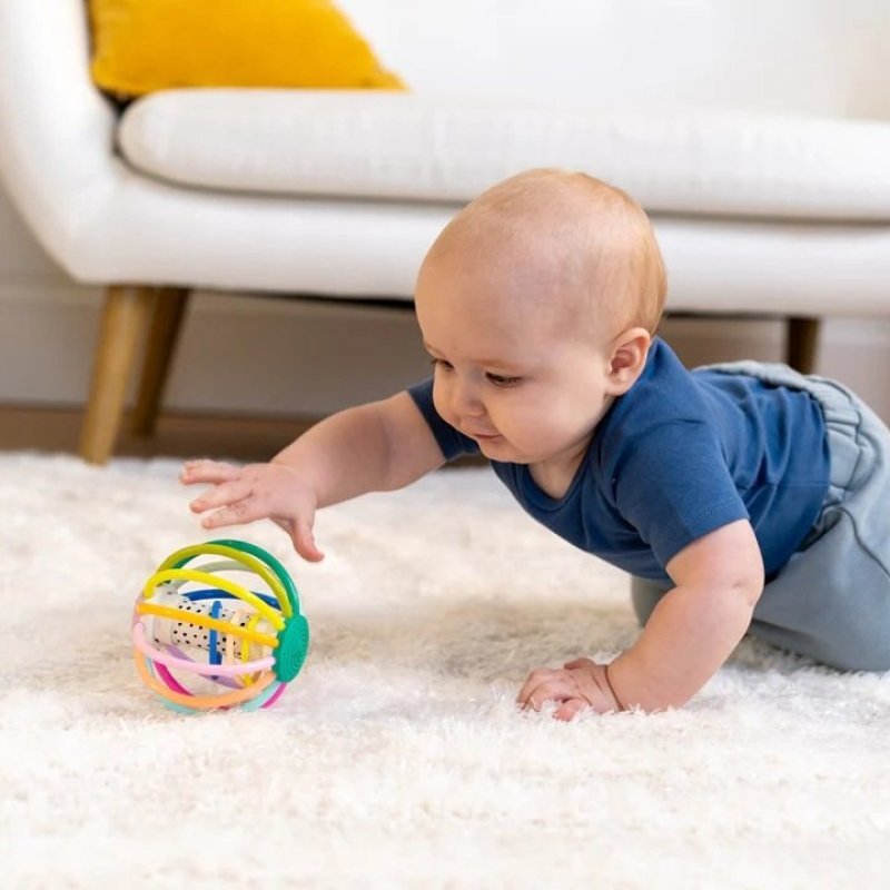 - podporuje rozvoj klíčových dovedností – od uchopení a sledování až po vkládání do úst a házení