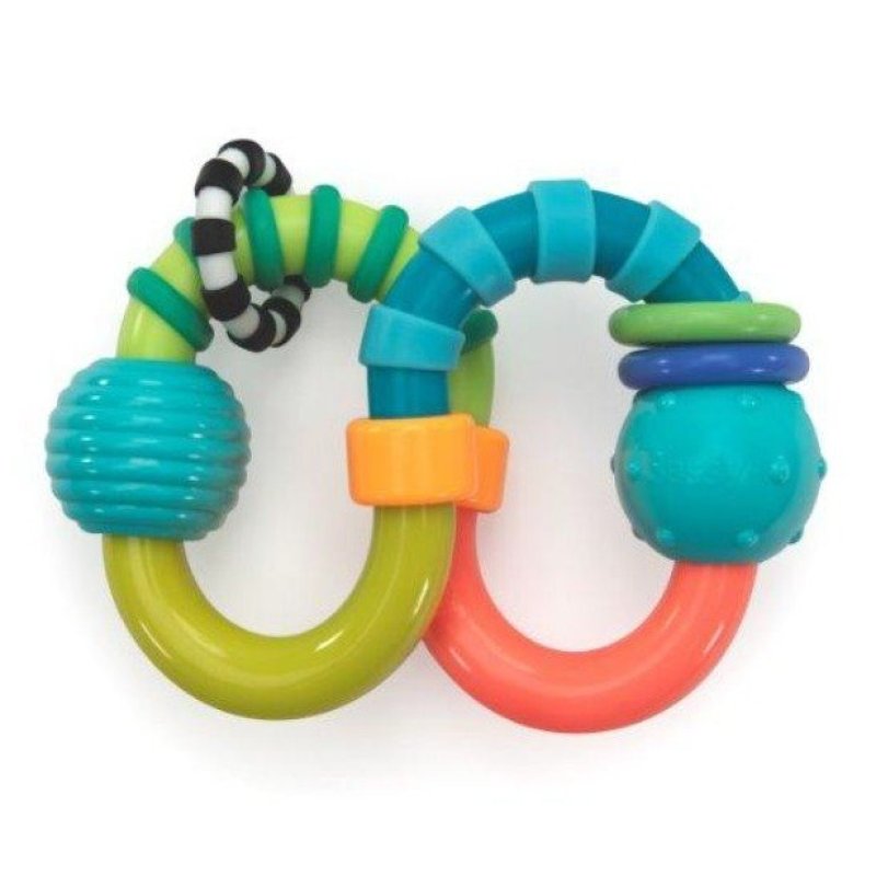 Měkké, velmi flexibilní kousátko v zářivých barvách s pohybujícími se kroužky. Pestrá kombinace barev, různorodých materiálů a textur se dokonale hodí pro ruce malých průzkumníků a zároveň stimuluje jemnou motoriku, rozvíjí představivost a podporuje celkový rozvoj dítěte.