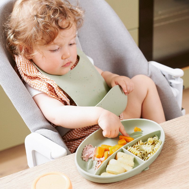 - měkký, silikonový talíř se 3 oddělenými přihrádkami