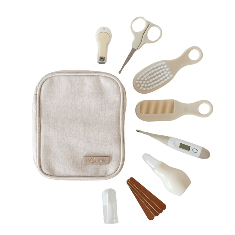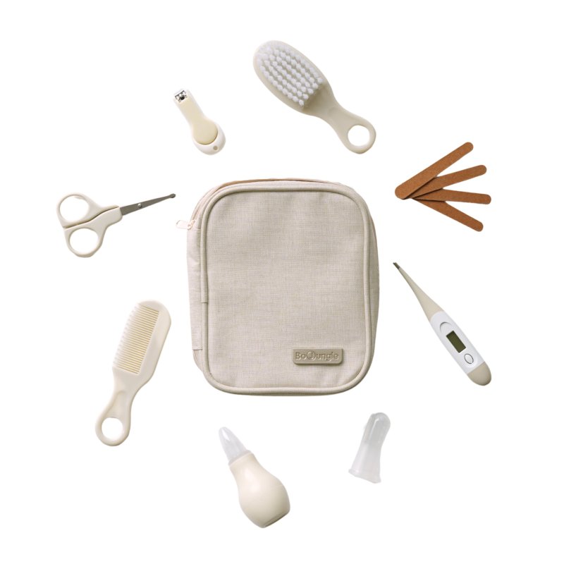 - obsahuje: pilníky, nůžky a kleštičky na nehty, silikonový kartáček na zoubky, hřeben a kartáč na vlasy, digitální flexibilní teploměr, nosní odsávačku