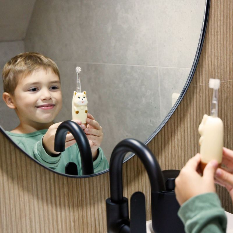 Sonický zubní kartáček pro děti v podobě roztomilého pejska podporující návyk správného čištění již od útlého věku. Od této chvíle budou děti čištění zoubků milovat!