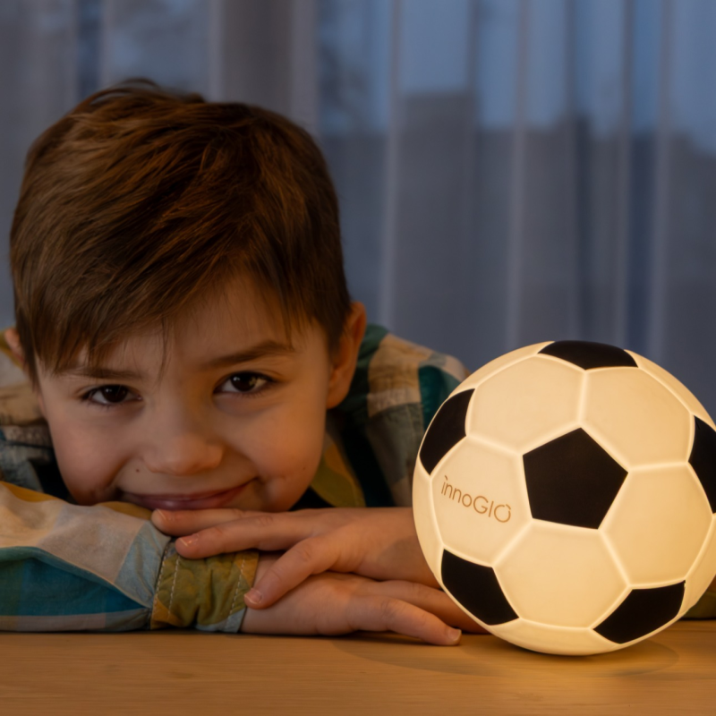 Noční světýlko ve tvaru fotbalového míče okouzlí nejen nejmenší, ale i jejich rodiče. Nabízí 3 intenzity teplého světla, které lze zapnout/vypnout pouhým dotykem. Jeho jemná záře a nastavitelná intenzita světla vytvářejí přátelskou a uklidňující atmosféru, která podporuje klidný spánek. Lampička zůstává na dotek chladná a je zcela bezpečná. Díky praktickému USB-C nabíjení si můžete vzít lampičku kamkoliv potřebujete – do dětského pokojíčku, na dovolenou nebo třeba na návštěvu k babičce. GIOball kombinuje zábavu, funkčnost a jedinečný design – jde o perfektní doplněk do pokoje každého malého (i velkého) fotbalového fanouška!