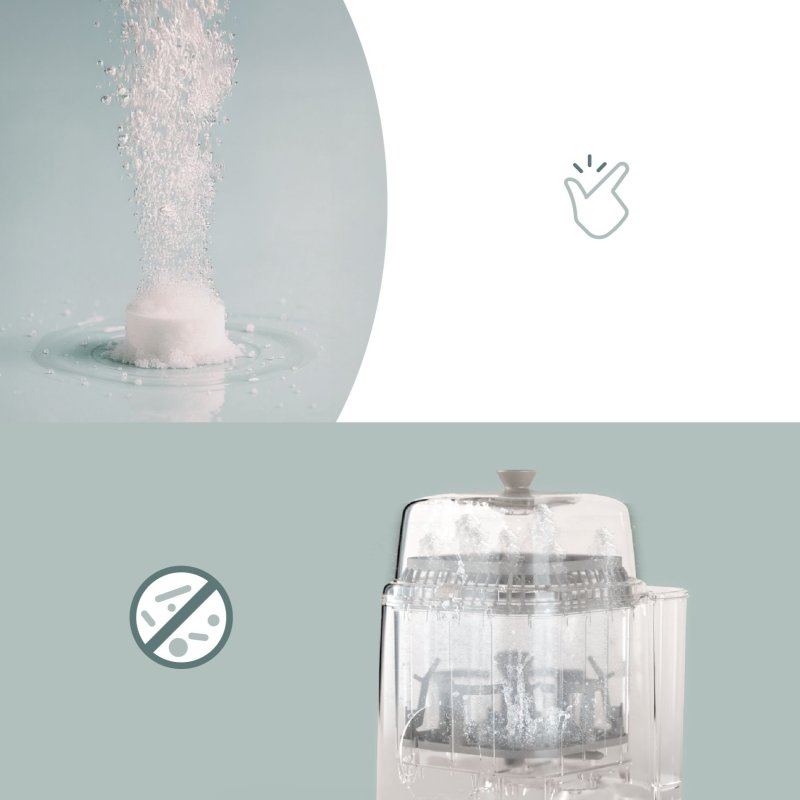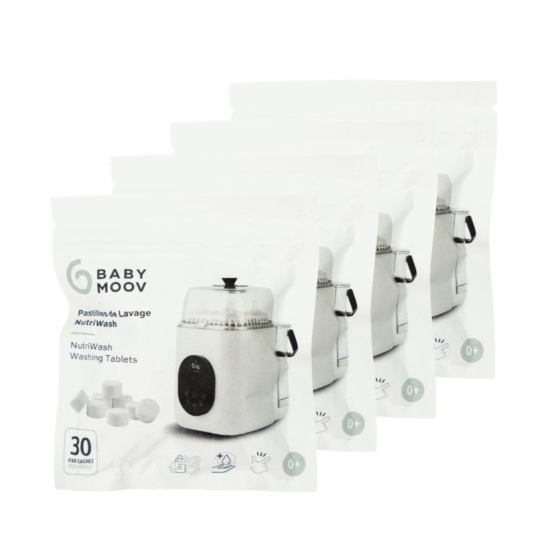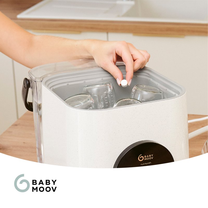 Použití:Vložte tabletu do zásobníku spotřebiče a spusťte mycí program. S Babymoov NutriWash 4v1 používejte pouze jednu tabletu na jeden mycí cyklus.